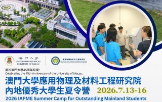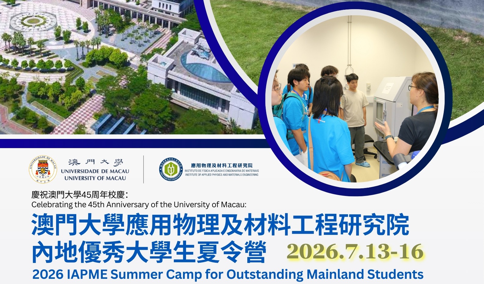 澳門大學應用物理及材料工程研究院將於2026年7月13-16日舉辦 "慶祝澳門大學45周年校慶 — 2026 IAPME內地優秀大學生夏令營交流活動",詳情請按此。 ...