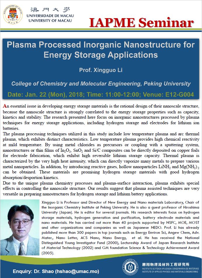 Speaker: Prof. Xingguo Li from Peking University (北京大學化學與分子工程學院 李星國教授)
