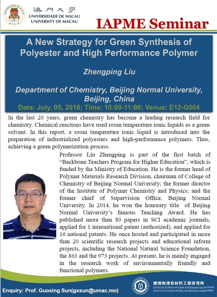 Prof. Zhengping Liu will give a talk to IAPME. Here is the information,