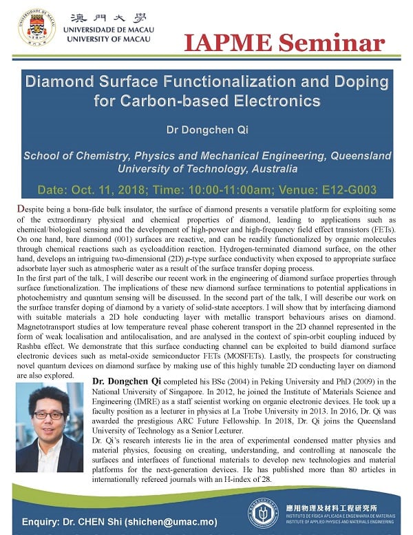 Dr. Dongchen Qi will give a talk to IAPME. Here is the information,