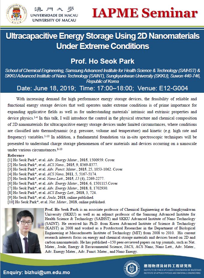 Prof. Ho Seok PARK will give a talk to IAPME. Here is the information,