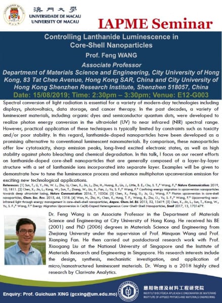 Prof. Feng WANG will give a talk to IAPME. Here is the information,