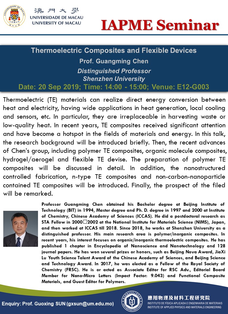 Prof. Guangming CHEN will give a talk to IAPME. Here is the information,