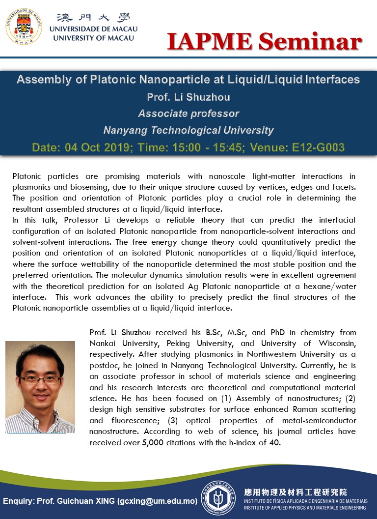 Prof. Shuzhou LI will give a talk to IAPME. Here is the information,