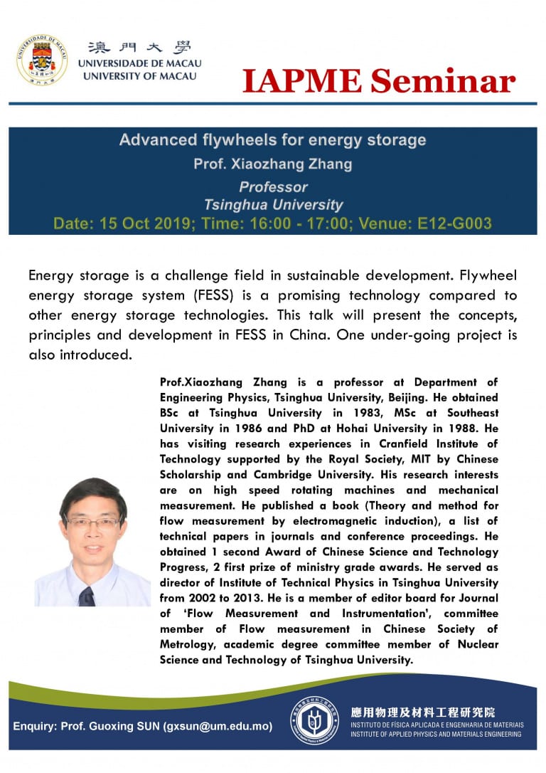 Prof. Xiaozhang ZHANG will give a talk to IAPME. Here is the information,