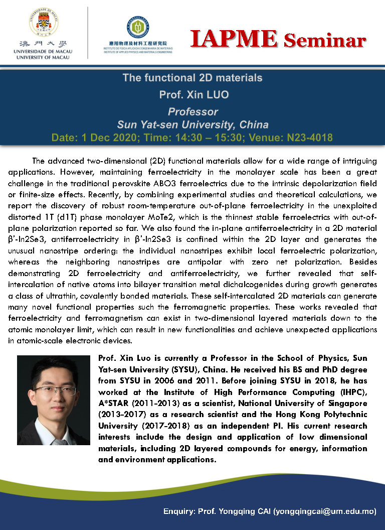 Prof. Xin LUO will give a talk to IAPME. Here is the information,