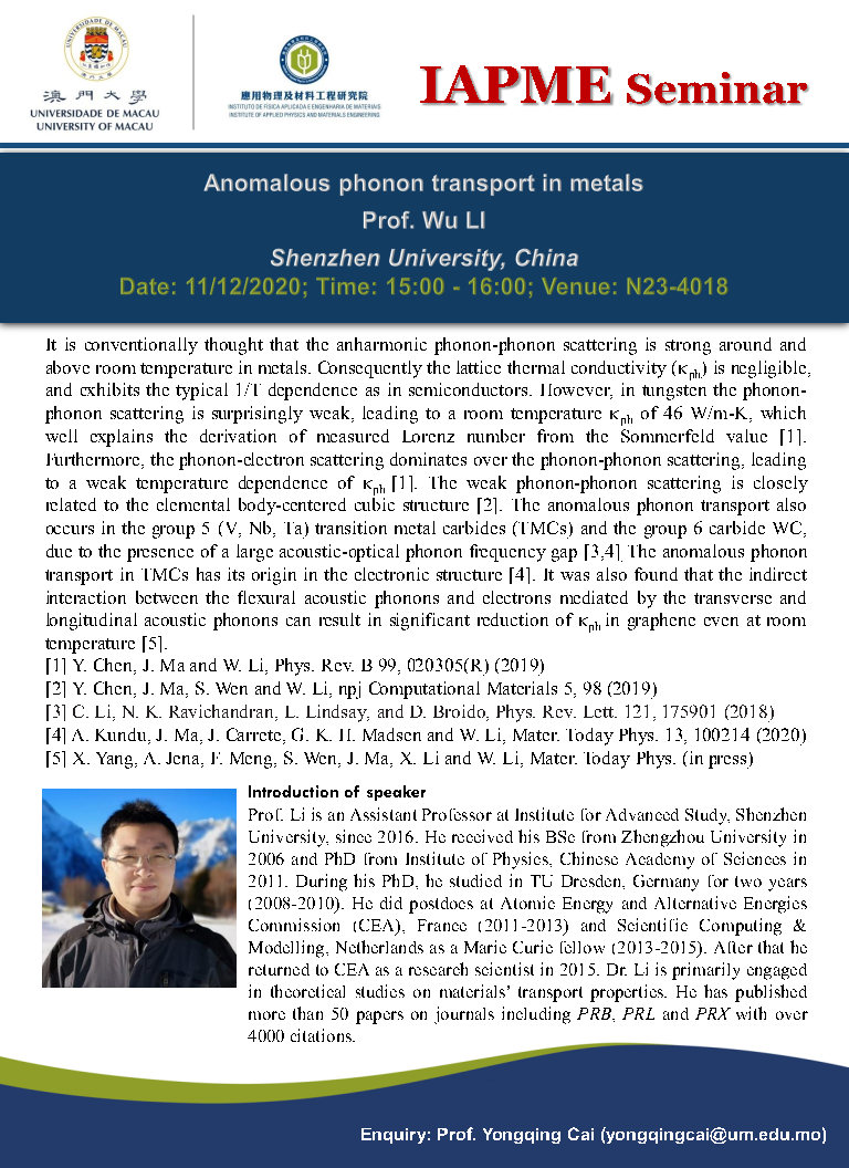 Prof. Wu LI will give a talk to IAPME. Here is the information,