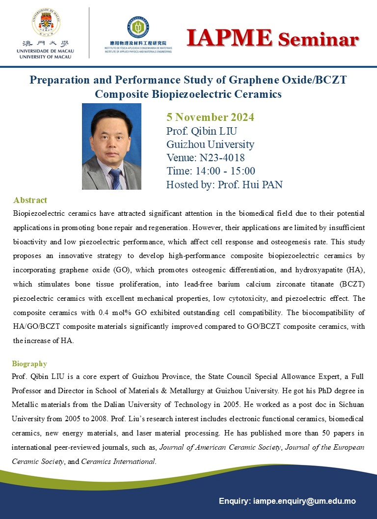 主題: 氧化石墨烯/BCZT複合生物壓電陶瓷的製備及性能研究