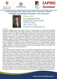 Prof. Dongping ZHONG will give a talk to IAPME. Here is the information,