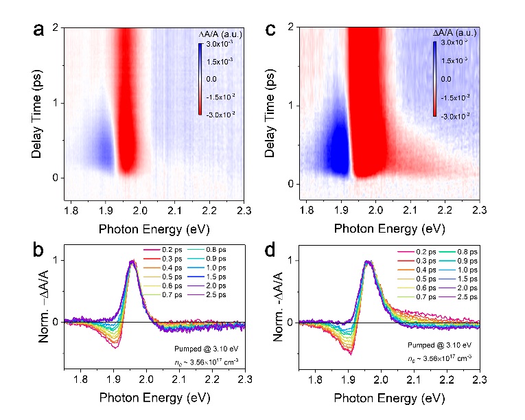 Solar cells, also known as ‘solar chips’ or ‘photovoltaic cells’, are photoelectric semiconductor sheets that use sunlight to directly generate electricity. In physics, this is called photovoltaic. Due to the huge amount of solar power that can be developed, it is generally considered as the most likely technology to solve energy crisis in the future. The theoretical limit of photon conversion efficiency (PCE) in traditional single-junction silicon solar cells is ~33.7% (ie Shockley-Queisser Limit), and the energy loss caused by hot carrier relaxation reaches ~33%, while the energy loss in perovskite solar cells is up to ~25%. During the hot carrier relaxation/cooling process in semiconductors, their kinetic energy is usually converted into lattice thermal energy in the form of phonon emission, which leads to the energy loss of light. Therefore, the successful development of a light-absorbing layer with long hot carrier lifetime under sunlight illumination level can facilitate the development of higher-efficiency hot carrier solar cells. It is currently one of the most cutting-edge area in research on carrier dynamics and photovoltaic conversion.