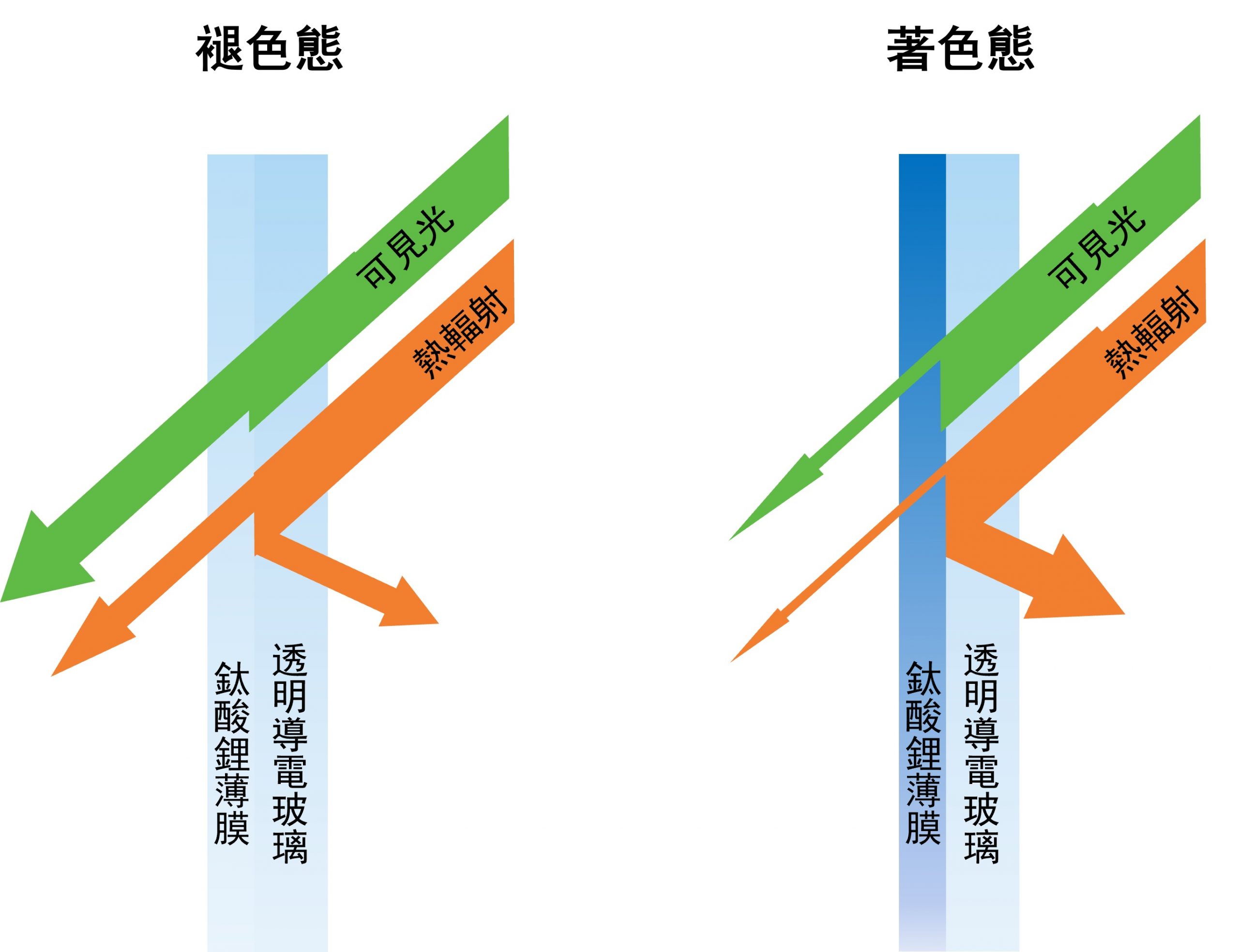 鈦酸鋰電致變色器件著(褪)色實物圖及工作原理,器件的儲能狀態可以通過透過率的變化可視化判斷