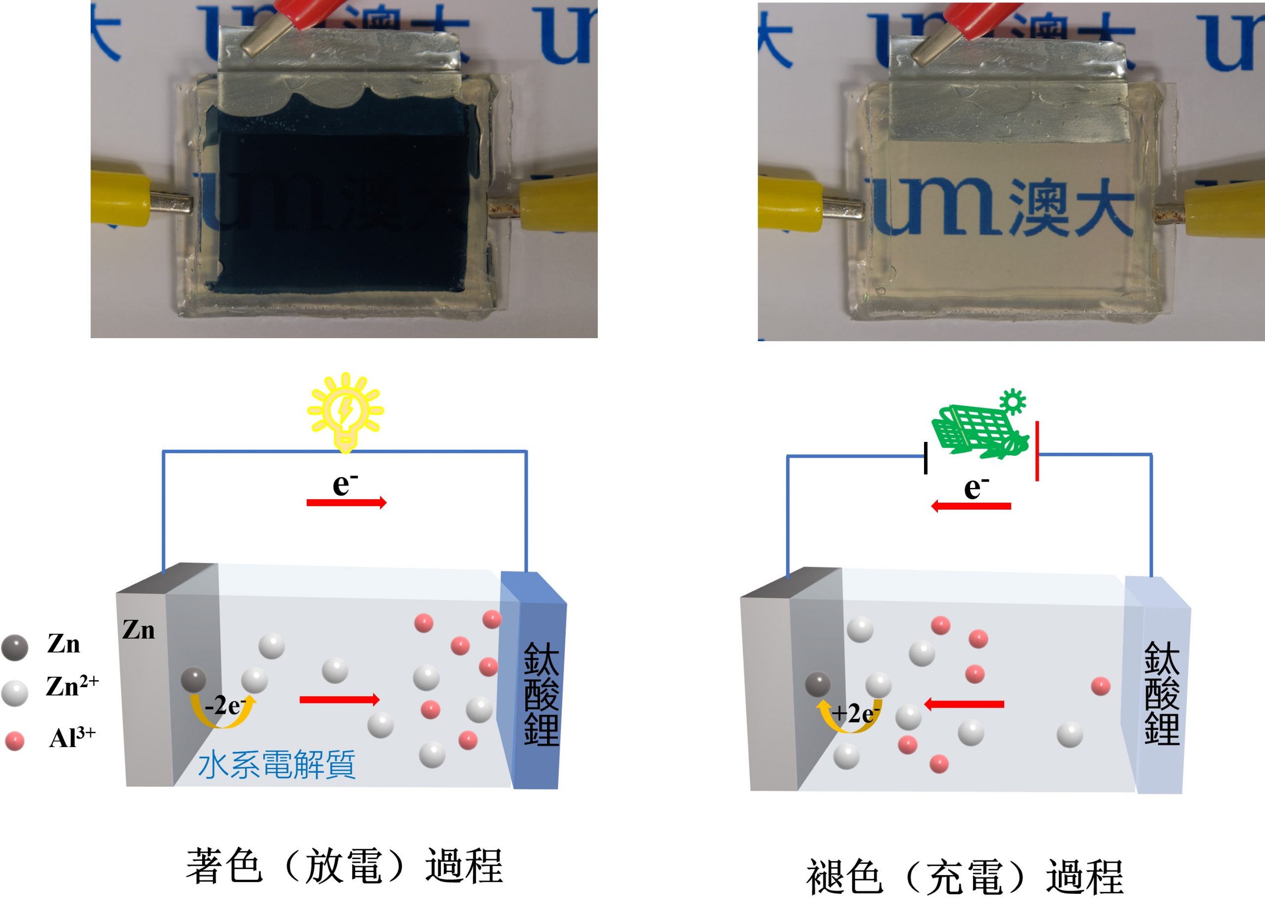澳門大學應用物理及材料工程研究院副教授吳嘉偉和王雙鵬的研究團隊首次提出一種新的電池技術,以水系電解質解決了現有基於水系電解液的傳統電致變色器件存在的壽命短的問題。新技術能使低成本、高安全性的水系電致變色電池商業化成爲可能,並且深入探究其高性能來源的內在機理,有望為其它高性能電化學的器件的設計提供潛在的設計指導。該研究成果已獲國際知名學術期刊《美國化學會—納米》(ACS Nano)刊登。