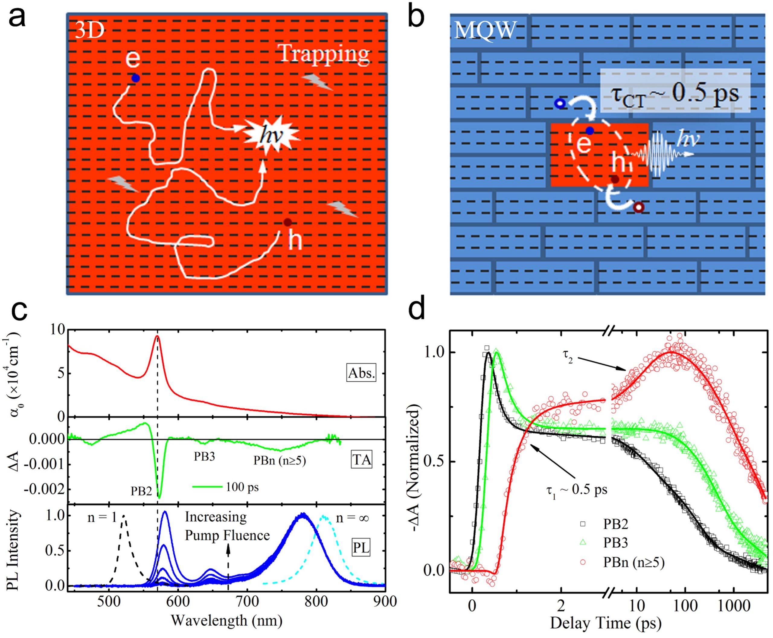 圖1     金屬鹵化物鈣鈦礦幾何維度依賴的載流子複合過程