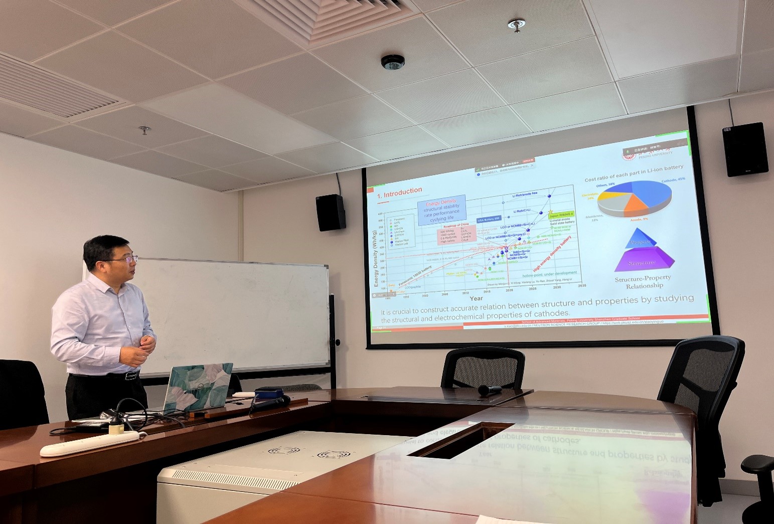 Invited by Prof. Hai-Feng Li, Prof. Yinguo Xiao from Peking University Shenzhen Graduate School delivered a talk on “Exploration and Optimization of the Structural Properties of Cathode Materials Using Neutron Scattering Methods” on 25 October 2024. In his presentation, he introduced the origin of neutrons, the principles of scattering, and the application of neutron scattering in battery research. Prof. Xiao’s group utilizes ex-situ and in-operando neutron diffraction techniques to investigate the structural characteristics of cathode materials in lithium and sodium-ion batteries, particularly focusing on the real-time structural evolution of cathodes during cycling. In addition to research on cathode materials, he also discussed the construction progress of the Peking University High Resolution Neutron Diffractometer at the China Spallation Neutron Source.