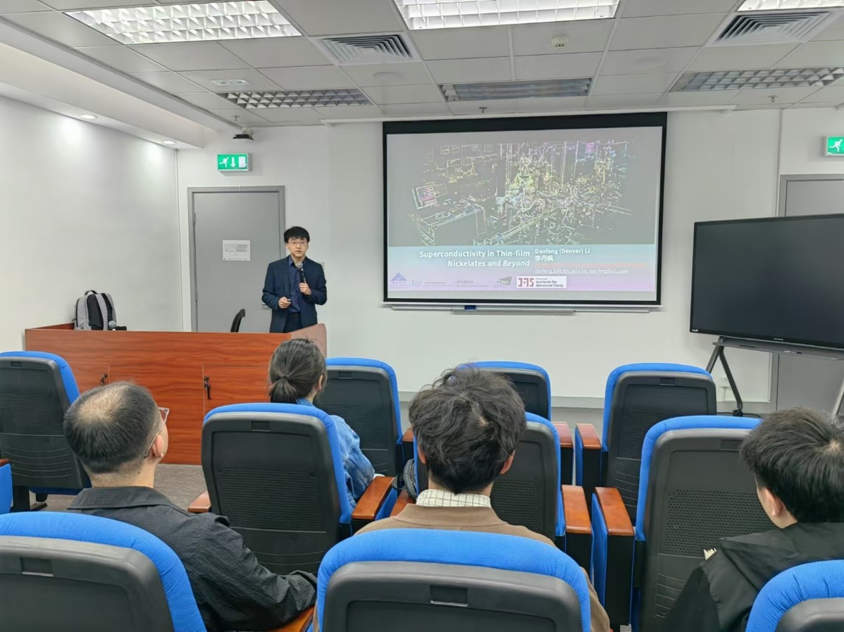 Prof. Danfeng Li, the Associate Dean at the City University of Hong Kong, is renowned for his groundbreaking research in condensed-matter physics and materials science. He delivered a presentation titled “Superconductivity in Thin-film Infinite-layer Nickelates” on November 21, 2024. The seminar was hosted by Prof. Hai-Feng Li.