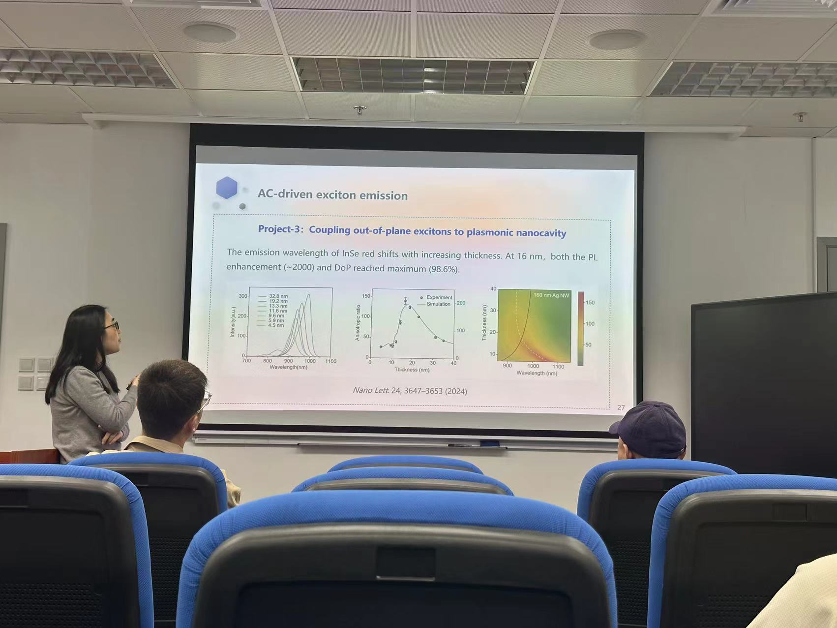 AC-driven exciton emission and AC-driven exciton transport. She delineated the specific advantages of the study, which include: 1. Open structure, easy to couple with optical microcavity or plasmonic nanocavity. 2. Potential applications in electrically pumped excition polaritions orpolariton lasers. Recent research highlights also include, using ultrafast pump-probe techniques, characterizing the transient dynamic behavior of exciton-plasmon coupling in two-dimensional semiconductor materials, which provides the possibility of ultrafast modulation of surface plasmon signals.