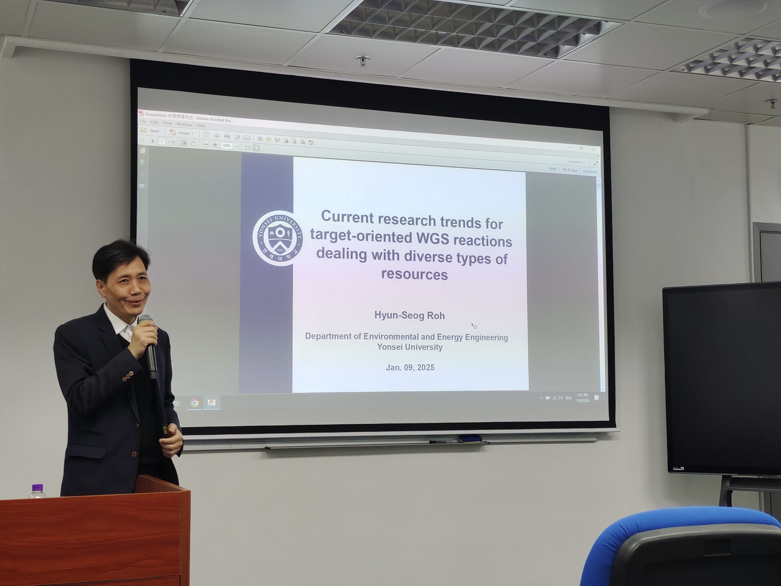 Prof. Hyun-Seog Roh, Director of the BK 21 FOUR project and Full Professor of the Department of Environmental and Energy Engineering at Yonsei University in Wonju, South Korea, visited IAPME on January 09, 2025. During his visiting, we had a fruitful discussion for the collaboration between two groups, especially on new and renewable energies, such as green hydrogen production. He gave a talk on “Current research trends for target-oriented WGS reactions dealing with diverse types of resources”.