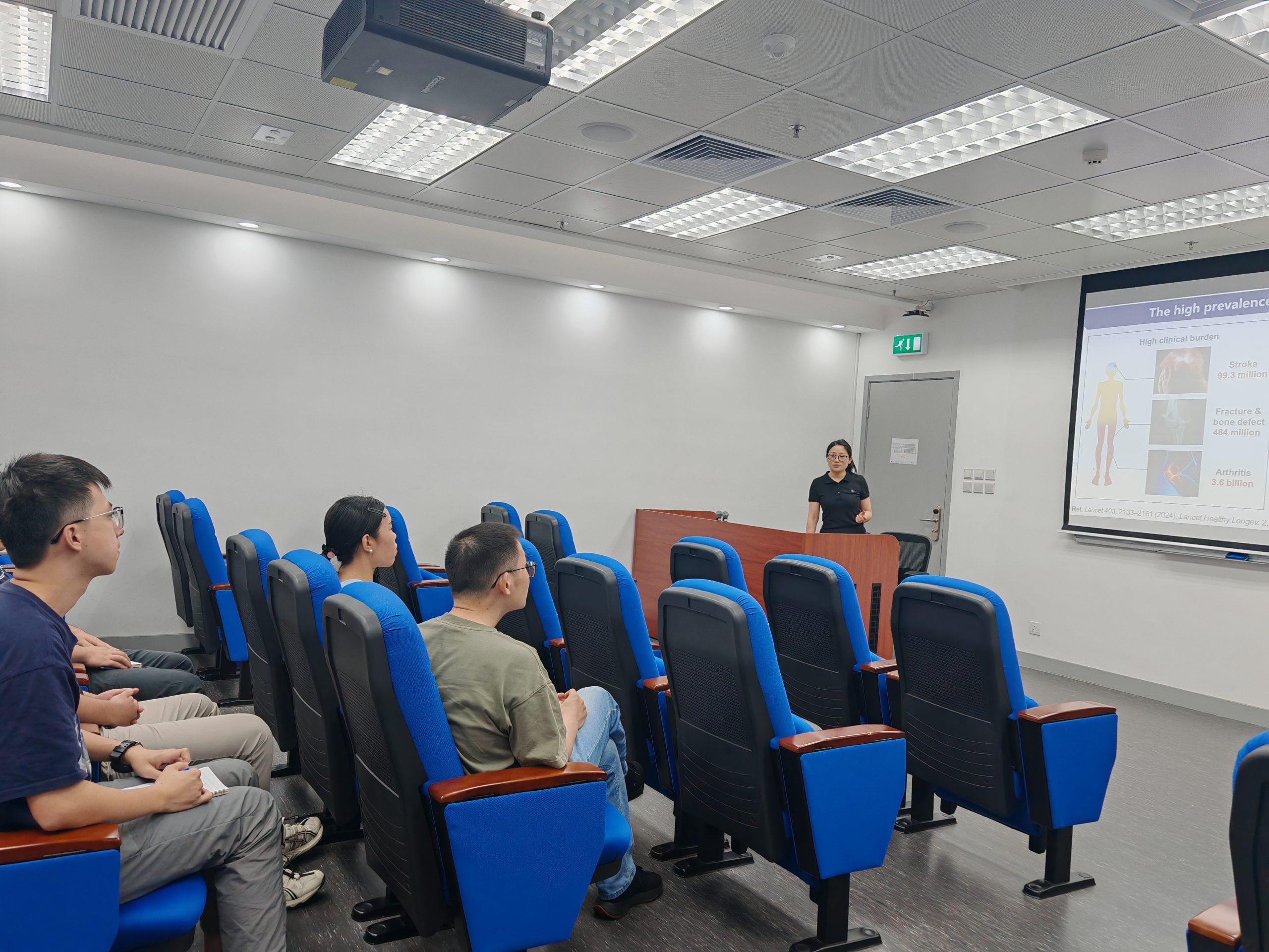 On June 12, 2025, Professor Wei Tang (唐爲) from Shenzhen Institutes of Advanced Technology, Chinese Academy of Sciences (SIAT, CAS) was invited to give a pioneering seminar titled “Nanoplatforms Overcoming Physiological Barriers for Tissue Regeneration and Precision Imaging”. Prof. Tang presented breakthrough strategies to overcome the critical challenge of biological barriers in hard-to-penetrate tissues (bone, cartilage, brain). Her team developed three revolutionary approaches: i) In Situ H₂-Generating Nanomaterials – Remodeling senescent/inflammatory microenvironments for aged bone repair, arthritis therapy, and stroke treatment; ii) Pathology-Targeted Self-Assembled Lubrication Layers – Preventing arthritis progression through cartilage-specific retention; iii) Glycosylated AIE Nanoparticles – Enabling ultrasensitive bacterial imaging in complex biological environments. These platforms achieve what traditional nanomedicine cannot: deep-tissue penetration with sustained therapeutic modulation, highlighted by Prof. Tang, showcasing hydrogen’s unique role in reprogramming pathological microenvironments.