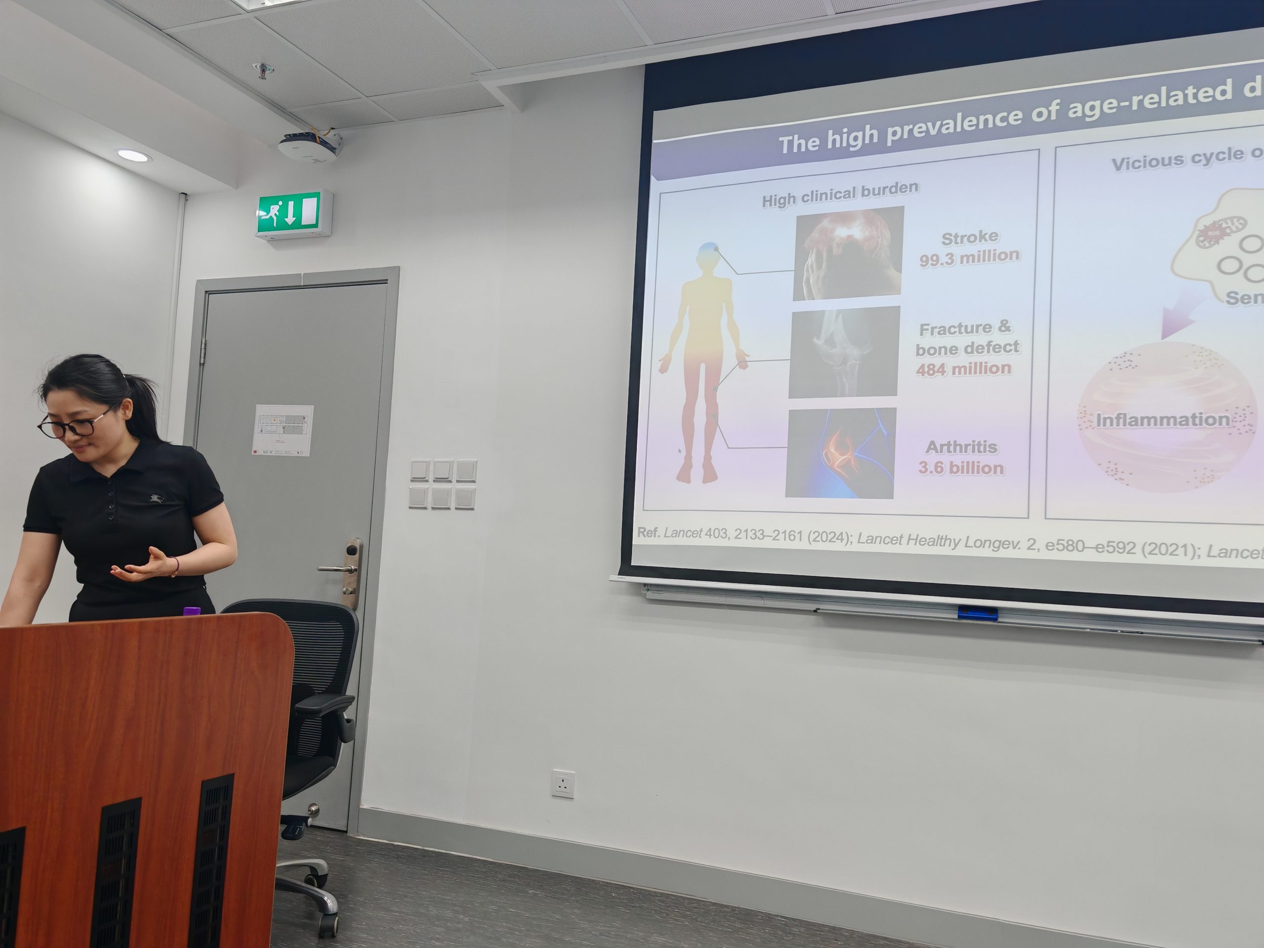 On June 12, 2025, Professor Wei Tang (唐爲) from Shenzhen Institutes of Advanced Technology, Chinese Academy of Sciences (SIAT, CAS) was invited to give a pioneering seminar titled “Nanoplatforms Overcoming Physiological Barriers for Tissue Regeneration and Precision Imaging”. Prof. Tang presented breakthrough strategies to overcome the critical challenge of biological barriers in hard-to-penetrate tissues (bone, cartilage, brain). Her team developed three revolutionary approaches: i) In Situ H₂-Generating Nanomaterials – Remodeling senescent/inflammatory microenvironments for aged bone repair, arthritis therapy, and stroke treatment; ii) Pathology-Targeted Self-Assembled Lubrication Layers – Preventing arthritis progression through cartilage-specific retention; iii) Glycosylated AIE Nanoparticles – Enabling ultrasensitive bacterial imaging in complex biological environments. These platforms achieve what traditional nanomedicine cannot: deep-tissue penetration with sustained therapeutic modulation, highlighted by Prof. Tang, showcasing hydrogen’s unique role in reprogramming pathological microenvironments.