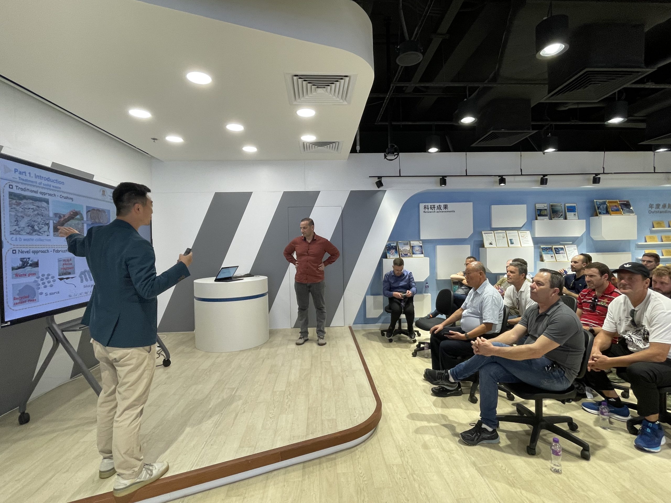 After that, Prof. Guoxing Sun’s research group introduced his commercialized products and showed some related videos from the research to the visitors, they were all impressed and interested in IAPME’s research outcomes. Lastly, Prof. Bernardo Tutikian from ASCON also invited IAPME members to visit their association in Brazil to have more discussions and collaborative points.