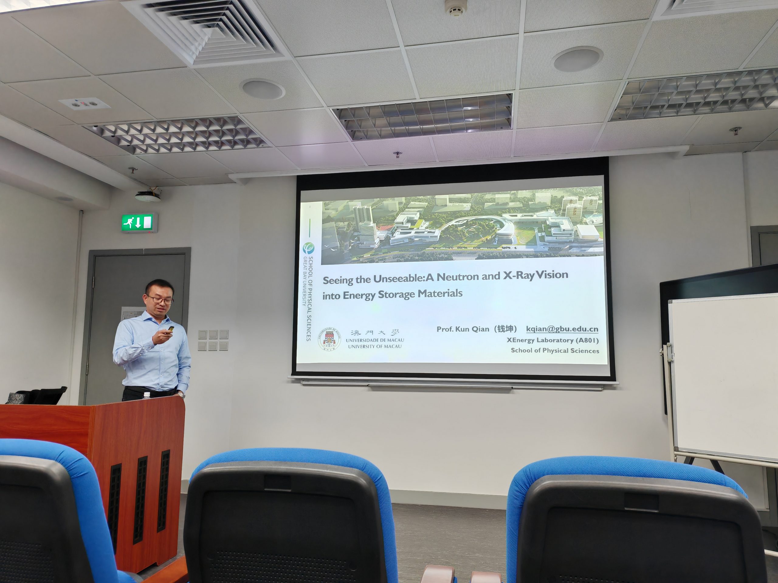 Prof. Kun Qian is an Assistant Professor from Great Bay University, specializing in applying advanced synchrotron X-ray and neutron scattering techniques to study material structures and degradation mechanisms. With over seven years of hands-on experience at world-leading facilities, including the Advanced Photon Source at Argonne National Laboratory and the China Spallation Neutron Source, and with numerous publications in top-tier journals, Prof. Qian brought a wealth of expertise and insight to the seminar.