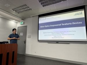In the seminar, Prof. Xu explained how terahertz waves, which sit between infrared and microwaves, are crucial for future technologies like 6G communications. Further, Prof. Xu introduced meta-optics, which uses artificial microstructures to control light, provides the perfect toolkit to manipulate these once-challenging waves. The talk highlighted two main categories of innovative devices: (1) Free-space manipulation Devices, including meta-optical components like ultra-thin waveplates, lenses, and holographic plates that efficiently control terahertz waves in open space. (2) Devices that bridge free-space terahertz waves with integrated on-chip systems. This is essential for creating the compact, multifunctional hardware needed for 6G applications.