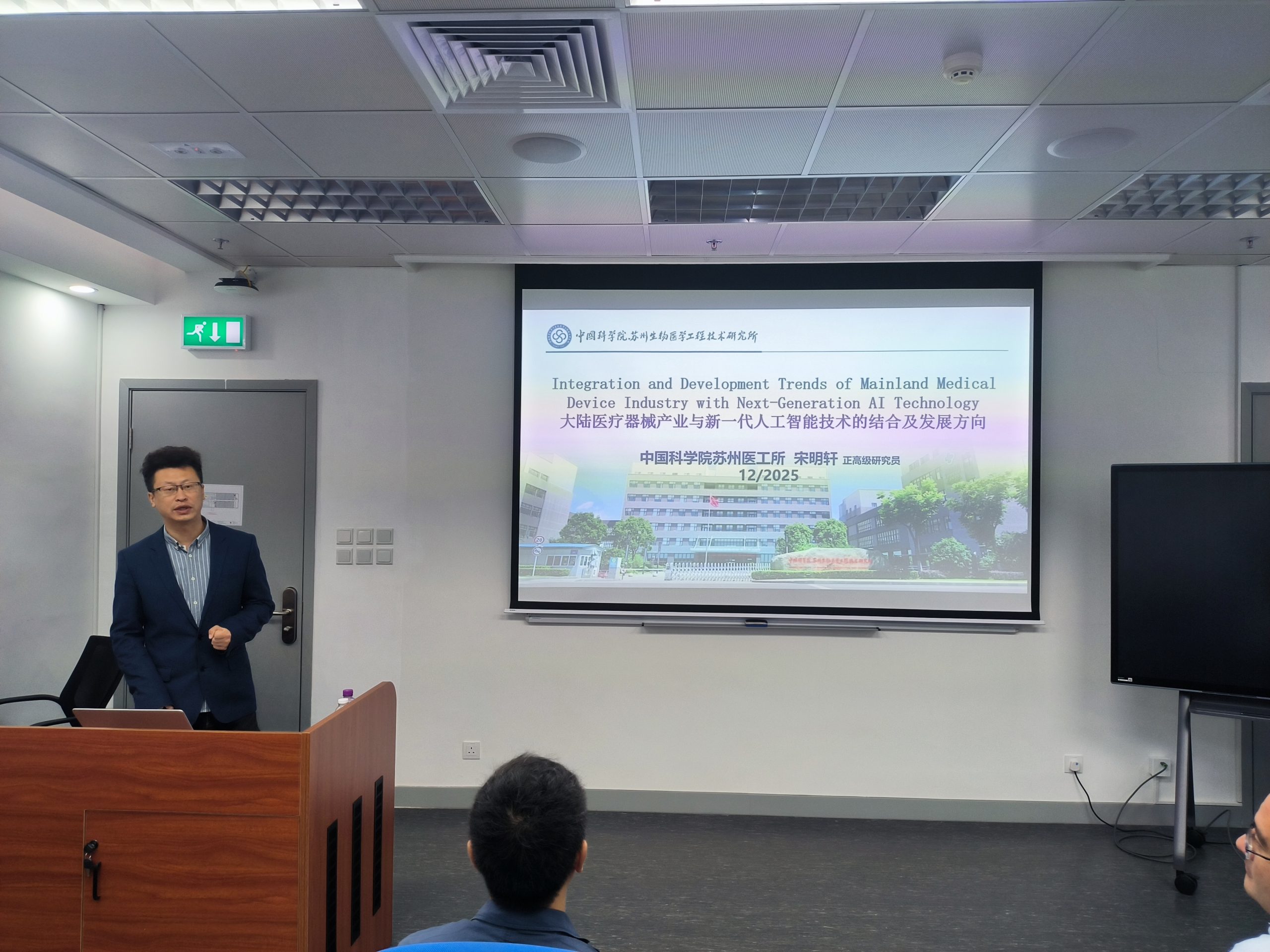 On 5 December 2025, our Institute hosted a seminar as part of its ongoing series, featuring Dr. Mingxuan Song (宋明軒) from Suzhou Institute of Biomedical Engineering and Technology. The session, titled “Integration and Development Trends of Mainland Medical Device Industry with Next-Generation AI Technology”, and hosted by Prof. Songnan Qu.