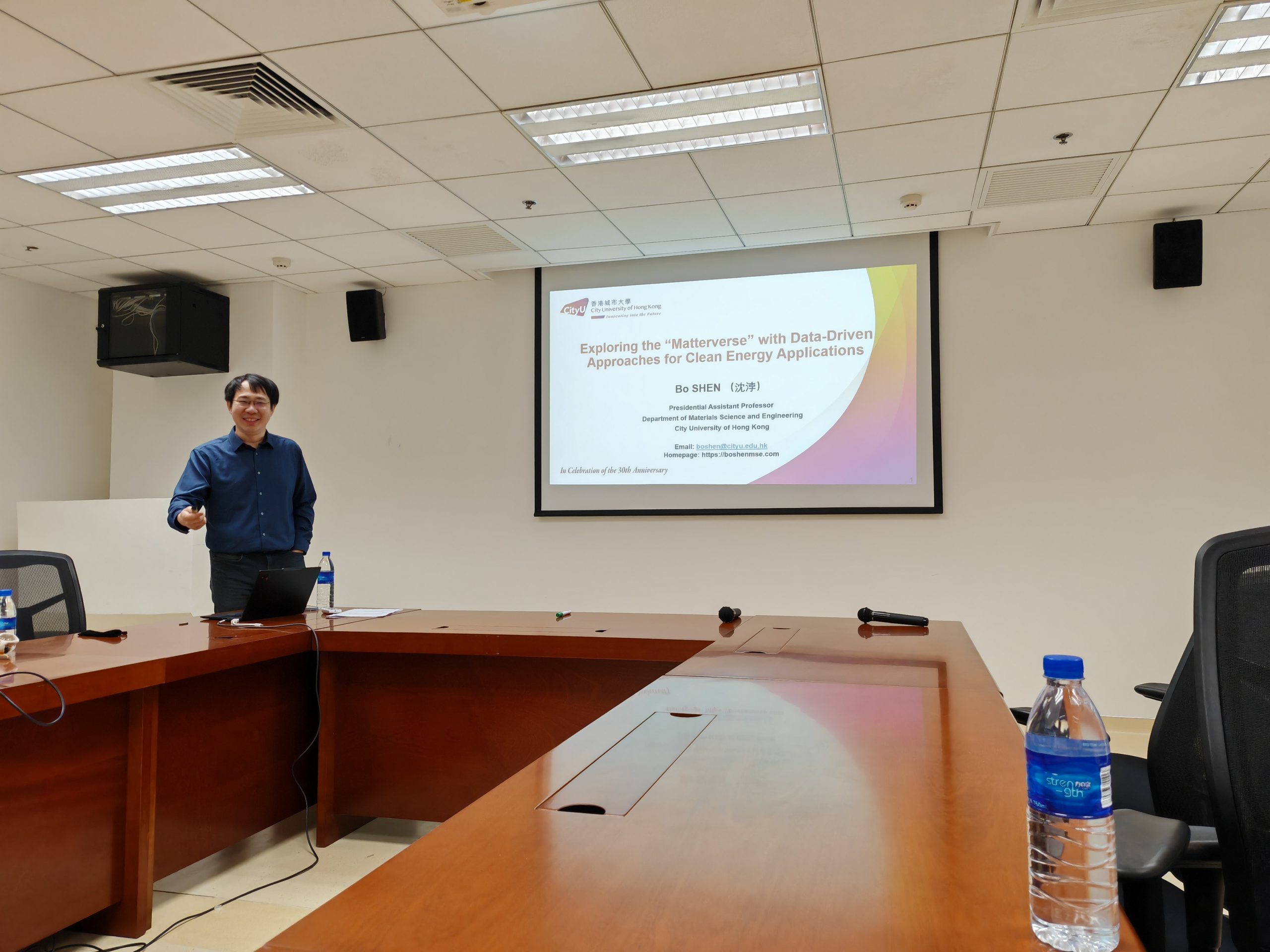 The Institute recently hosted a seminar, “Exploring the “Matterverse” with Data-driven Approaches for Clean Energy Applications” Presented by Prof. Bo Shen (沈浡) from City University of Hong Kong as speaker, and hosted by Prof. Qing Li.