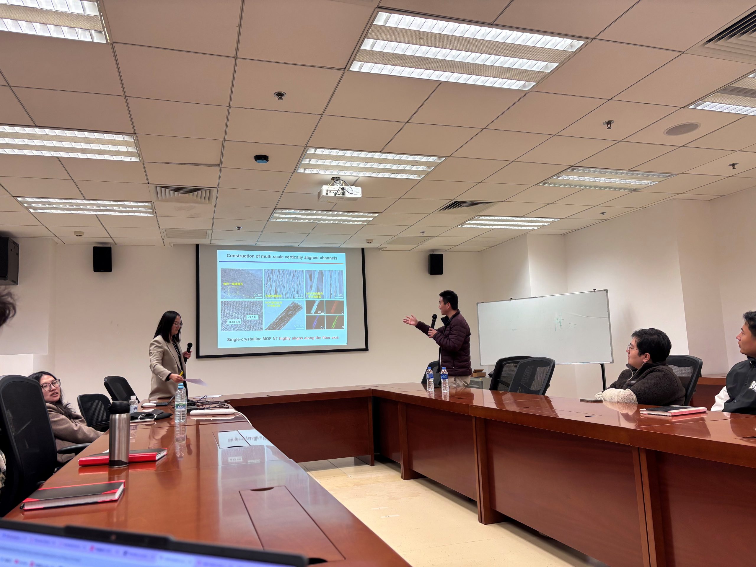 Her talk focused on the nanofiber-integrated polymer composite materials since it combines advantages of the high porosity and well-connected pore channels of nanofibers with the flexibility and easy processing of polymer materials demonstrate multi functions and diverse applications. Prof. Miao begin with the microstructure design of highly oriented ceramic nanofibers by involving the external field-assisted electrospinning strategy. Furthermore, the organic-inorganic interfacial interactions are precisely engineered by in-situ polymerization or physical assemblies to accelerate the ion-selectively transport kinetics at the interface.