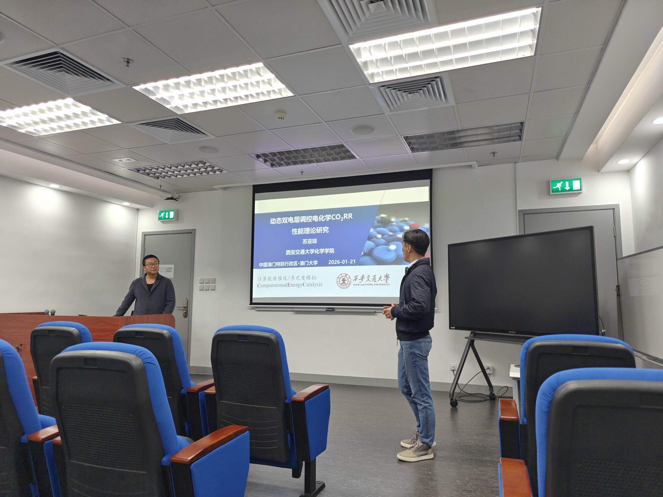 On January 21, 2026, in a timely seminar addressing the global push for sustainable energy, Prof. Yaqiong Su (蘇亞瓊) of Xi’an Jiaotong University delivered an insightful presentation on “Multi-Scale Modeling of Electrochemical CO2RR”, the session was hosted by Prof. Hui Pan. The event drew researchers, students, and faculty eager to explore cutting-edge solutions for carbon capture and utilization.
