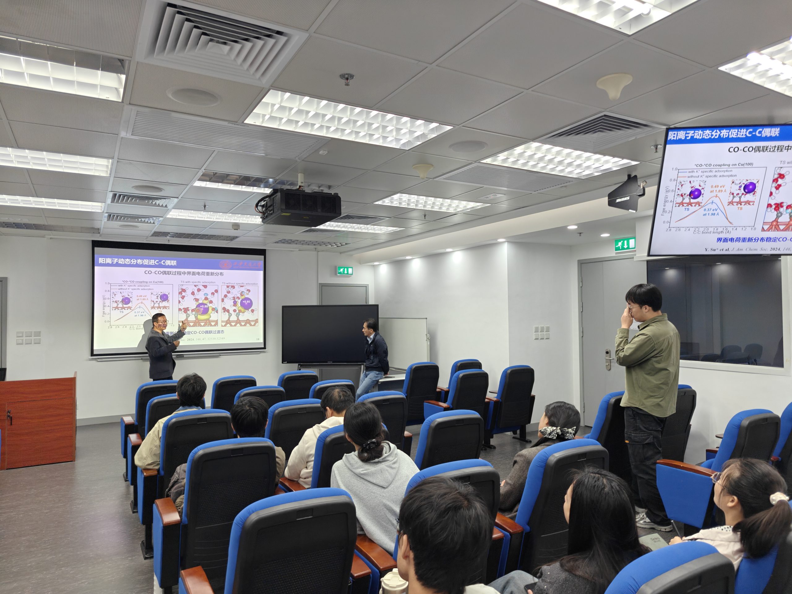 The lecture delved into the electrochemical reduction of carbon dioxide (eCO2RR), a promising technology for converting greenhouse gases into valuable fuels and chemicals. Prof. Su, a renowned expert in theoretical chemistry and computational catalysis, unpacked the atomic-level mysteries of eCO2RR mechanisms at the catalyst-electrolyte interface, a frontier that remains poorly understood despite its potential to drive carbon neutrality.